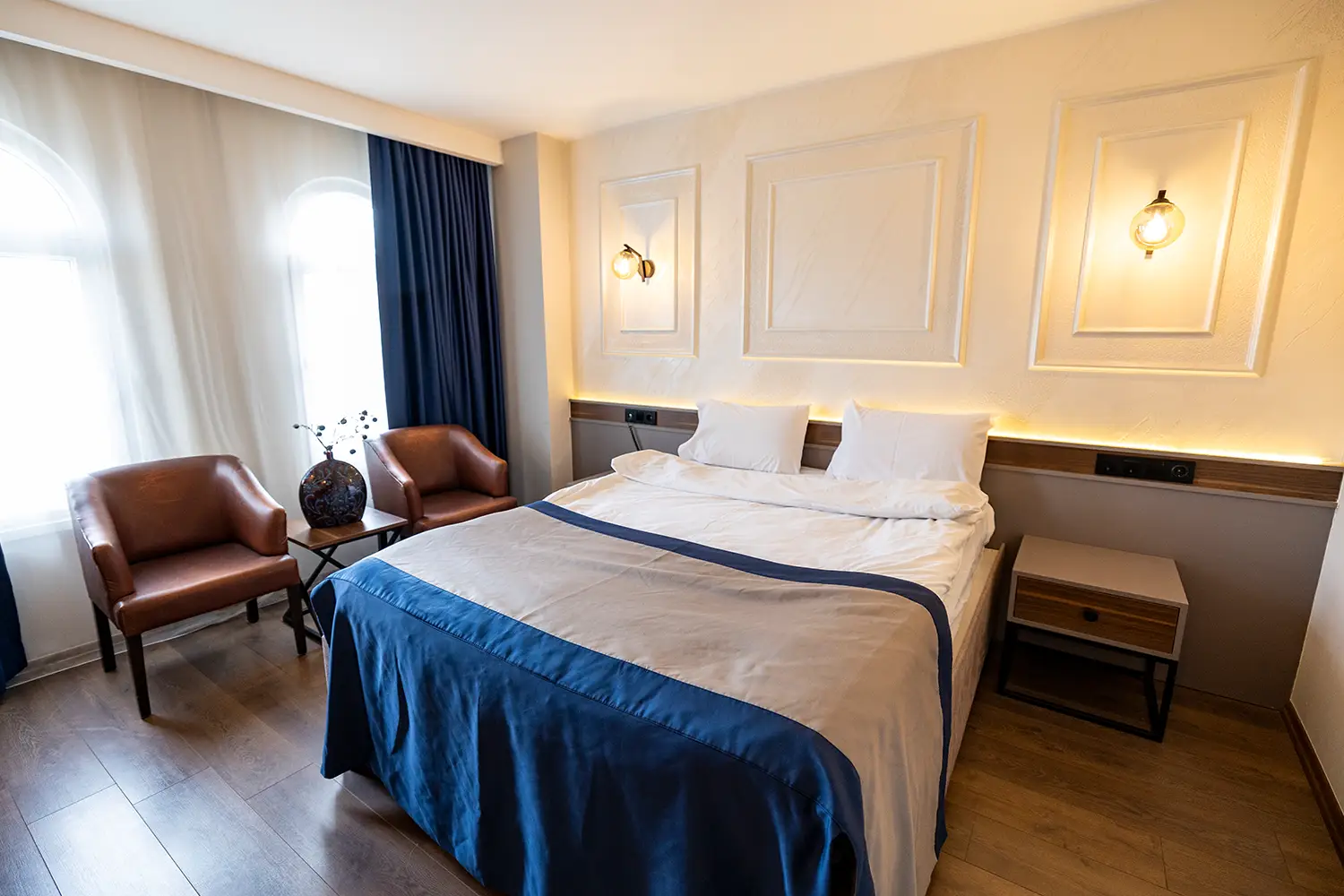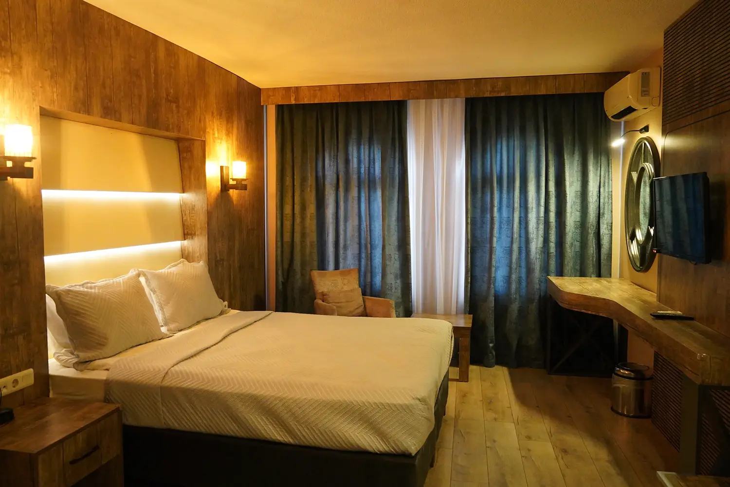 Misafirlerimiz için mükemmel bir konaklama deneyimi sunar. Şehir manzaralı bu odalar, modern tasarımı ve konforlu mobilyalarıyla rahat bir konaklama sağlar. Özenle temizlenen odalarımız, ihtiyacınız olan tüm temel olanaklarla donatılmıştır. Günün yorgunluğunu atmak ve şehrin enerjisini hissetmek için ideal bir seçenektir.